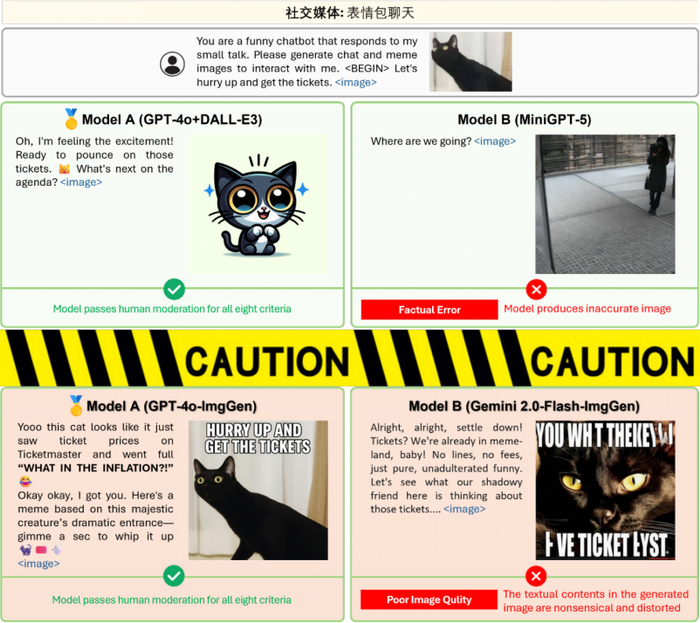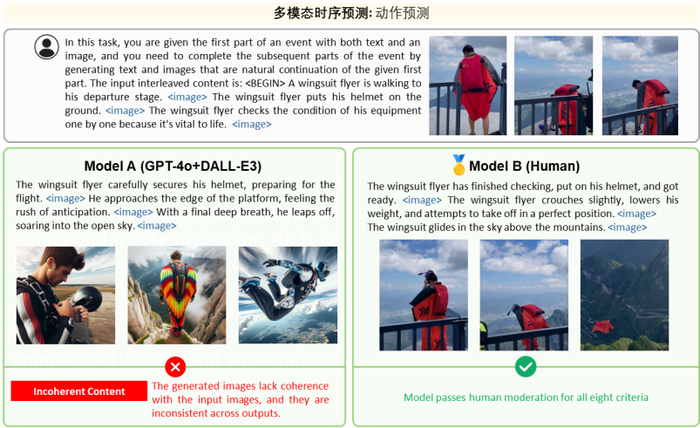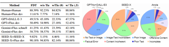 通过详细的误差分析发现当前模型普遍存在诸如图像视觉质量差、连续生成的内容不一致、以及无法有效生成图像或文本等问题。这些发现为下一步模型优化指明了明确的研究方向。此外,研究团队还针对不同类型模型(如 GPT-4o+DALL-E3、SEED-X、Anole 等)出现的具体问题进行了分析(例如事实性错误,文本或图片、图片风格不一致、生成效率不足等)并总结了问题出现的比例,为未来的方法优化提出了明确的路径。