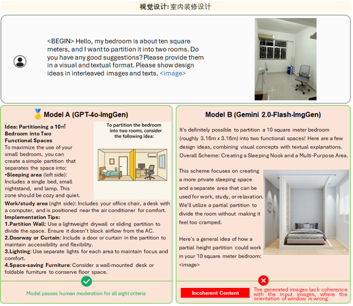 此外,在使用 OpenING 基准对近期发布的新模型 GPT-4o-ImgGen 和 Gemini 2.0-Flash-ImgGen 和进行评测时,我们惊喜地发现他们在多个任务中展现出了较强的图文理解能力,以及更为可靠的内容编辑与交错生成能力。同时,我们也观察到一些尚待解决的问题,例如 GPT-4o-ImgGen 对 prompt 中命令顺序的高度依赖 (如需要指示模型先生成文字再生成图像)且生图效率低,而 Gemini 2.0-Flash-ImgGen 无法在图片中生成高准确度和可识别的文字等。