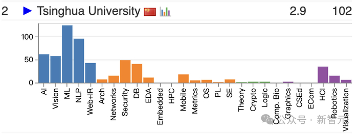 清华在ML、NLP论文数量远超人工智能和计算机视觉领域。