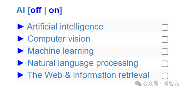 在AI板块,主要有5个细分领域:1.人工智能(Artificial intelligence);2.计算机视觉(Computer vision);3.机器学习(Machine learning);4.自然语言处理(Natural language processing);5.网页信息检索(The Web & information retrieval)。