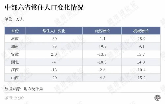 事实上,在中部六省中,仅安徽一省2024年常住人口呈正增长。数据显示,安徽年末全省常住人口6123万人,比上年末增加2万人。