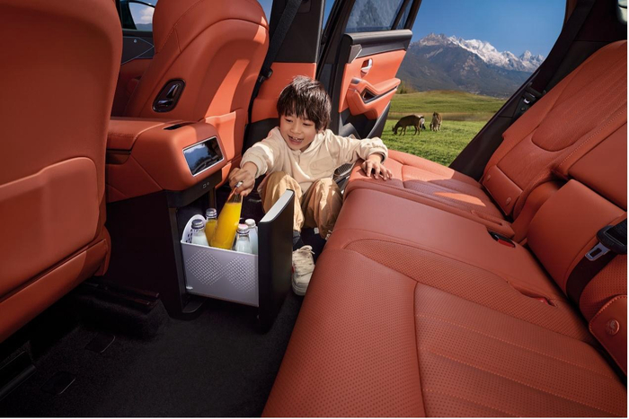 舒享配置上,宽适云感座椅采用 11 层填充结构,并拥有真皮包覆、前中排座椅通风加热、SPA 级 10 点式按摩、14 向电动调节、电动腿托,打造极致乘坐享受。交互式双层环抱氛围灯、比亚迪自研 21 扬声器音响、双层车载冷暖冰箱、智能香氛等豪华配置,五感融合,让每一位家人都能收获最高品质的豪华享受。