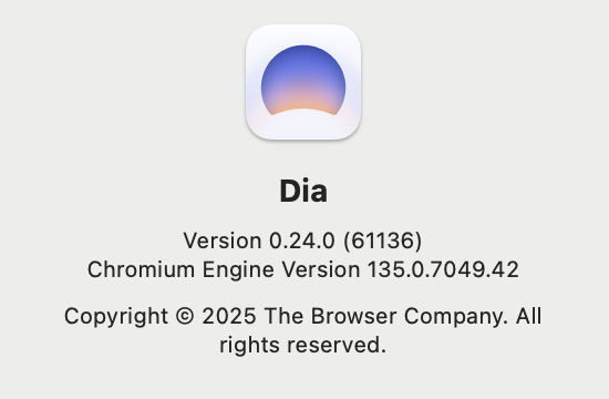 值得注意的是,Dia浏览器使用的是Chromium引擎的特定版本。Chromium是一个开源项目,许多现代浏览器(包括Chrome)都基于它构建。