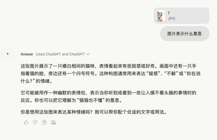 比如在知乎看到有人推荐线性代数书籍,我本来想评论一句“不明觉厉”,但写到一半卡住了,怎么办,这时候,放到光标处,光标就会变蓝变粗,点击会自动调出右侧Chat界面。