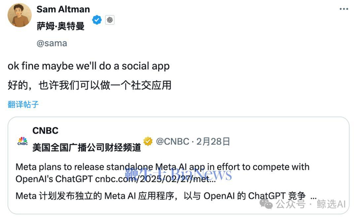 无独有尔,OpenAI 也在评论Meta的相关新闻时,提到正在开发自己的AI社交网络。