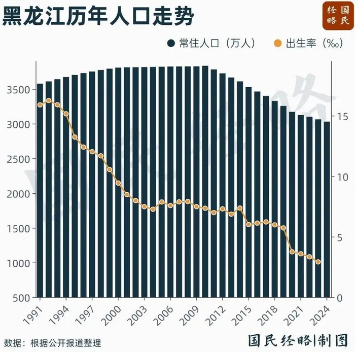其一,人口负增长,或因自然人口负增长,或是本地人口净流出,而黑龙江恰恰集两者为一体。