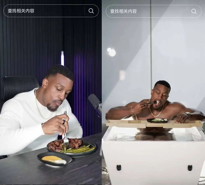 直到去年12月份,他开始拍摄冰水泡脸的精致男孩vlog,肌肉名表豪车豪宅频繁出镜,气泡水喝一瓶砸一瓶——噱头拉满之后,评论区充满羡慕对顶级男性的溢美之词。