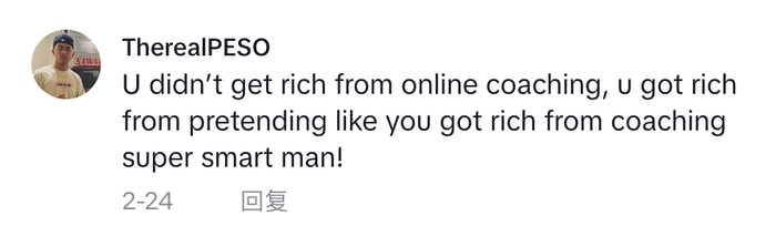 每周在健身房70个小时的高强度工作,让他感到非常挫败。他意识到打工根本赚不了钱,一份高中学历也换不来跑车豪宅,于是他辞掉了健身房的工作,成为一名专职网红。
