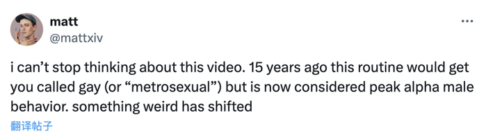 一位网友在推特感慨,Ashton这种类型的肌肉网红,前几年还被美国网友辱骂为“gay里gay气的娘炮男”,结果现在一跃成为顶级alpha男人了——这上哪说理去?