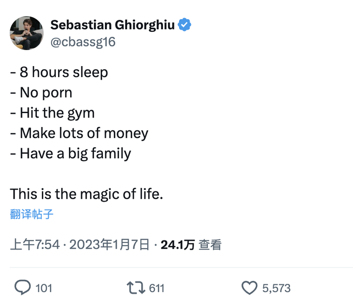 一个成功的alpha男人应该利用天亮前的四个小时来雕刻自己的肉身,日出之后,开上你的保时捷911出门赚钱。