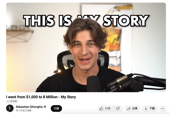 看懂的人已经开始笑了。之所以这么干,是因为YouTube上有一系列“教你如何在23岁赚到人生的第一个100万”的视频。