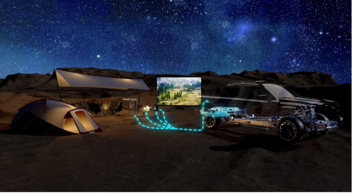 整车支持最高 6kW 对外放电功率,满足户外照明、野炊、采暖以及咖啡机、投影仪、取暖电器等拓展使用,实现搬家式休旅生活;更可充当应急电源,为救援工具供电使用,安全更有底气。货箱配备 220V 电源接口,支持 2.2kW 大功率放电输出,可满足大部分户外电器的使用,全面赋能户外生态拓展,解锁花式皮卡生活。