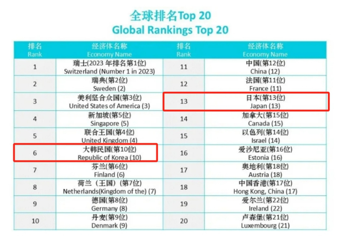 2024年9月,联合国专门机构——世界知识产权组织(WIPO)发布《2024年全球创新指数》。根据这份报告,韩国创新指数位居世界第六、亚洲第二;日本位居世界第十一,亚洲第四。