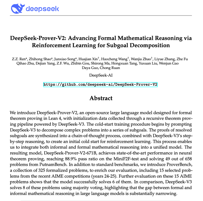 从论文所透露的方向来看,DeepSeek-Prover-V2 给出的不仅是数学答案,更指明了语言模型下一阶段的可能路径。