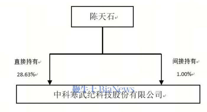 陈天石直接和间接持有寒武纪29.63%股权,为公司最大股东。