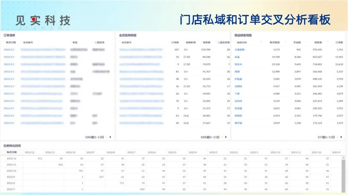 在见实直播间,LightAI联合创始人郑月明提到,在私域把BI工具用起来,更可以让业务人员自主分析千万级订单,快速定位用户需求。