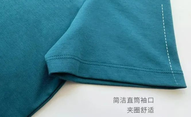 袖口以及底摆,用进口的五线机拷边,每3cm不低于15针(国际标准每3cm12针)。