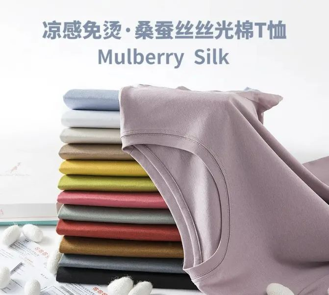 凉感降温,顺滑不粘身,桑蚕丝丝光棉T恤!今夏刚需必备,几十元就可以享受到大牌T的高级面料!