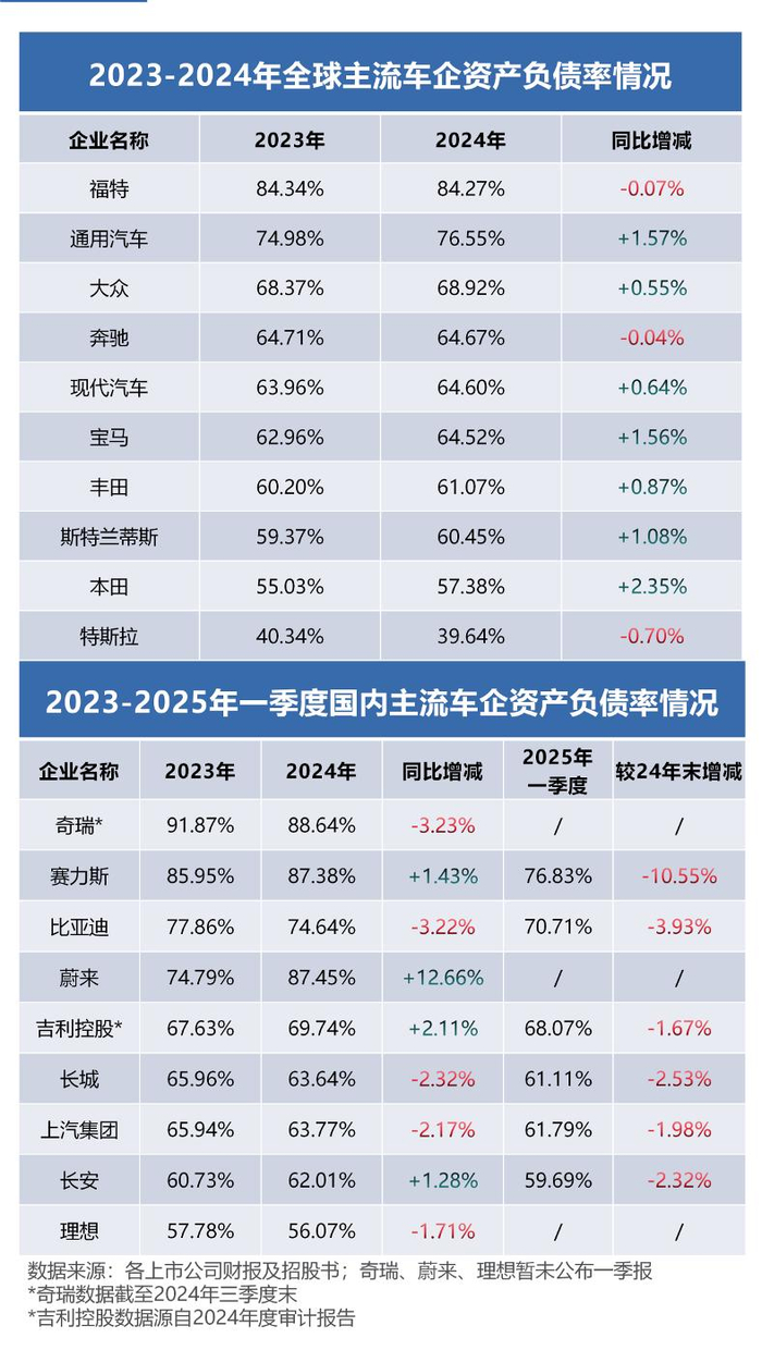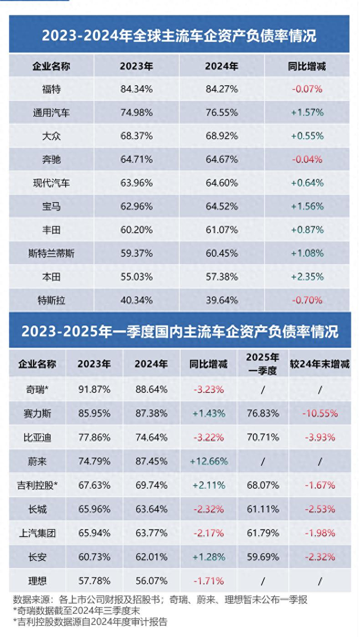 例如,2024年末,大众集团营收2.5万亿元,总负债达3.4万亿元,是同期营收的136%;福特营收1.3万亿元,总负债达1.7万亿元,是同期营收的131%;丰田营收2.2万亿元,总负债达2.7万亿元,是同期营收的123%。通用汽车、宝马、奔驰、现代汽车的总负债也在万亿以上。