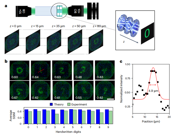 此外,通过空间光调制器投射的 HeLa 细胞图像的直接光学传输还展示了迁移学习,这些图像并不在训练数据集中。审稿人一致认为这项研究具有重要的应用价值。