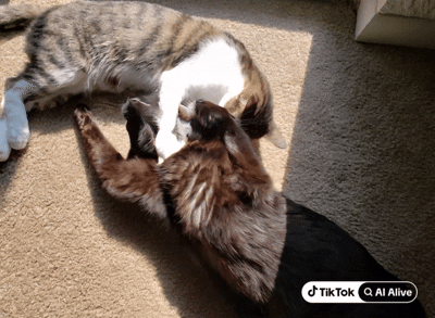 他尝试上传了几张自家猫咪的照片,并使用了TikTok提供的默认提示“让这张照片活起来”,以及一些自定义提示。