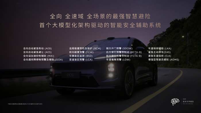 新 ES6、新 EC6 基于 NWM 蔚来世界模型能力,实现更全面的安全守护。新增「全球首发」的 RCM 追尾碰撞预防及保护功能,前窜距离最多可降低 93%,减少二次碰撞伤害;新增「行业首个量产」紧急自主靠边停车功能,成为紧急状态发生时的“替补司机”;新增 ET9 同款影像技术——「神玑安全影像」,有效减少视野盲区,全面增强影像画质,提升驾驶安心感;新增 ET9 同款高速爆胎安全控制功能,以技术定义安全,成为最显性的豪华。