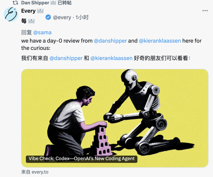 知名科技作者 Dan Shipper 提前体验了 Codex,并用一篇博客分享了他的使用感受。