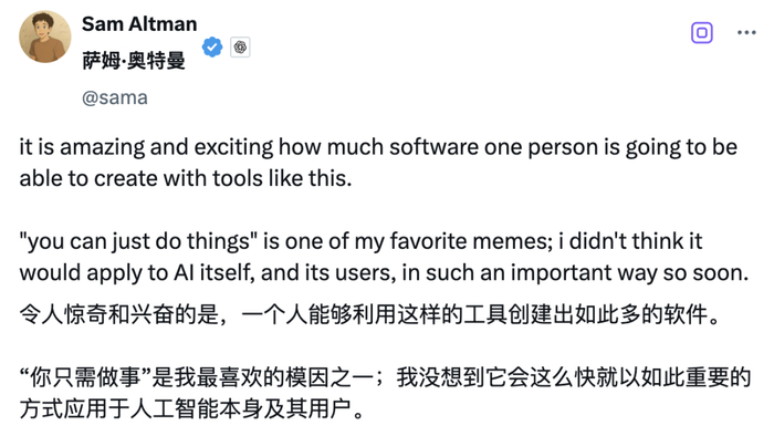 像这样的工具,让一个人能开发出的软件数量,实在令人惊叹又令人兴奋。「你其实可以直接去做」是我最喜欢的梗之一;我原本没想到,它会这么快以如此重要的方式应用到 AI 本身以及它的使用者身上。