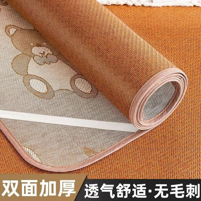 双面设计,随心切换。这款凉席采用双面设计,一面是自然藤席,另一面是亲肤冰丝席。