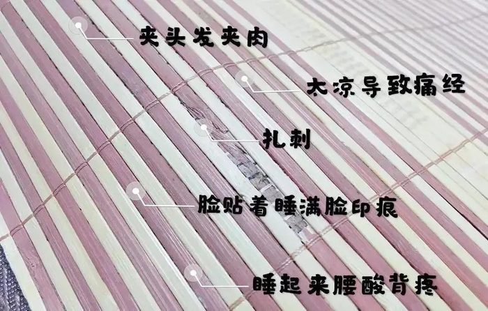 普通的硬竹席、麻将席硬邦邦的硌得骨头都疼,尤其是竹席睡久了之后就可能会被突然冒出来的“小针”扎一下: