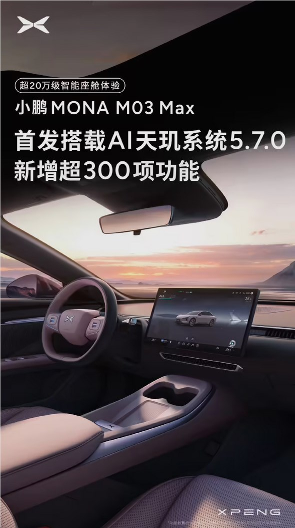 增加300+项功能!小鹏MONA M03 Max首发搭载AI天玑系统5.7.0