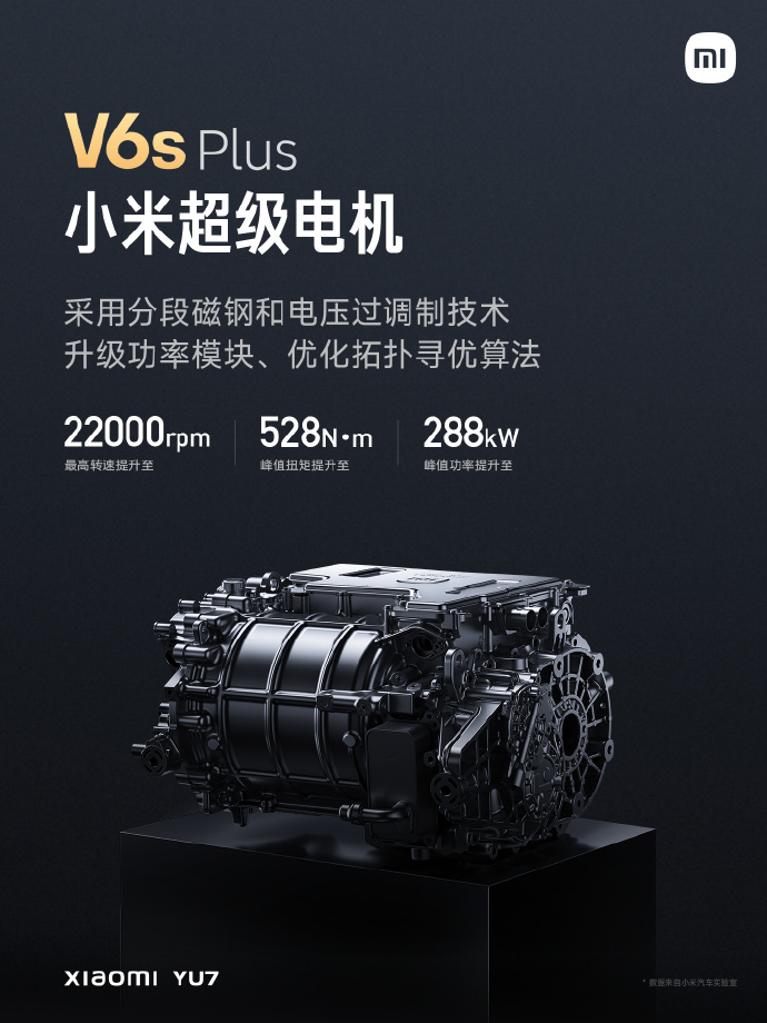 其他性能配置方面,搭载小米超级电机 V6s Plus ,最大马力可达 690PS ;