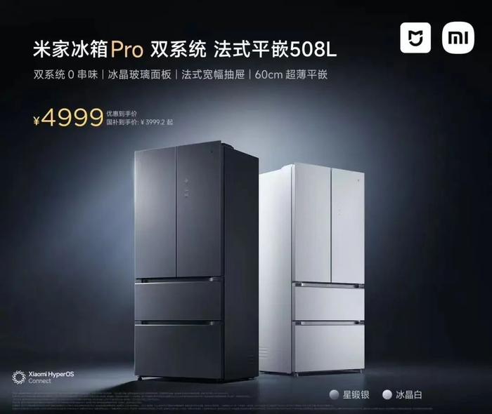 这款米家冰箱 Pro 法式 508L 新机售价 4999 元,国补价 3999.2 元起。