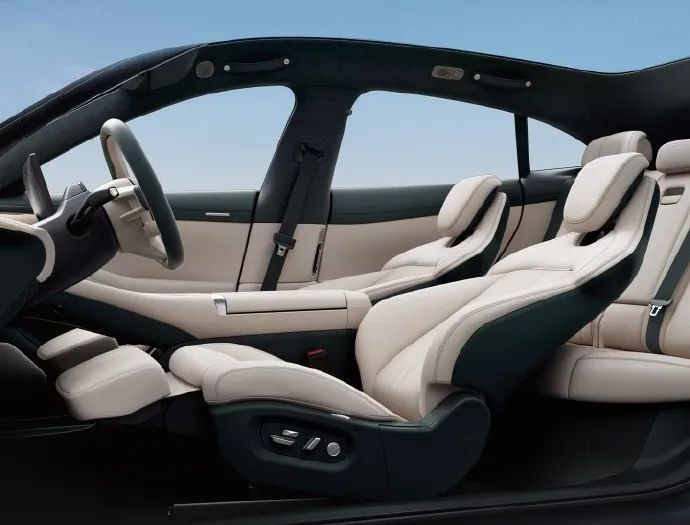 高频接触内饰面 100% 软包覆,Nappa 真皮座椅,前排双零重力座椅,有大于 Model Y 和 Cayenne 的 100mm 头部空间;