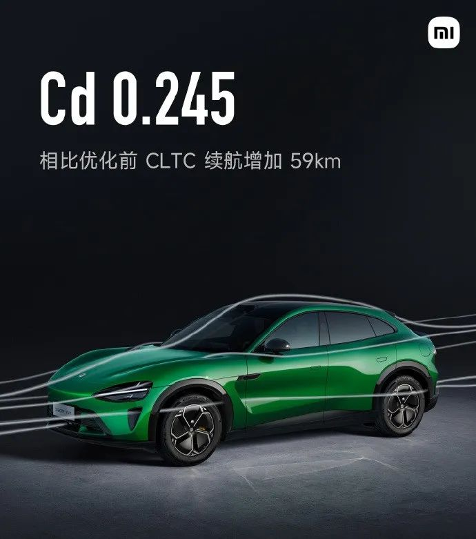 还有 10 组贯穿式风道,19 个风口,40+ 处风阻优化,风阻系数低至 0.245 。