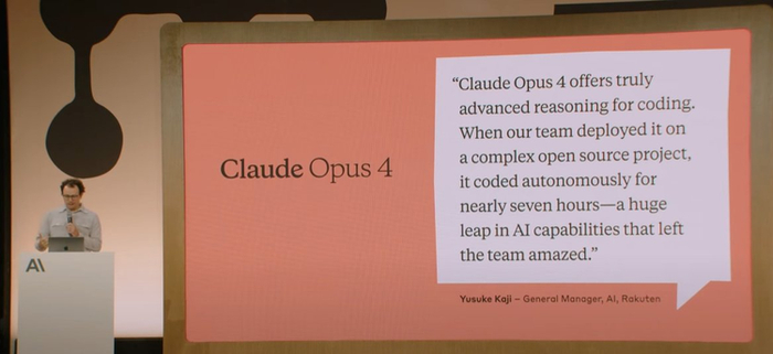 Rakuten 在一项高要求的开源重构任务中,Opus 4 连续稳定运行长达 7 小时,表现出色。Cognition AI 表示,Opus 4 能解决其他模型此前无法完成的复杂任务。这种深度理解和生成能力,是构建更高级智能体的前提。