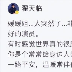 知名演员朱媛媛因病去世,她的丈夫辛柏青对外透露她抗癌五年。多位明星发文悼念,其中包括与朱媛媛同为青岛人的男星翟天临。然而,翟天临的悼念引发了意外的风波。他在社交媒体上感慨朱媛媛去世太突然,夸赞她是好人、好演员,并提到她常常给身边人鼓励和温暖。