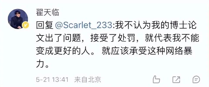 他并不认为博士论文出了问题受到惩罚,就代表他不能成为一个好人,就该承受这种网暴。