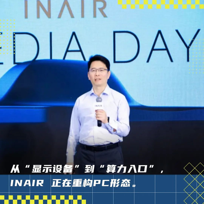 在5月15日,INAIR最新的产品发布会中,我们看到了一个类似于PC的产品形态,不同的是,它用新一代AR眼镜(INAIR2 Pro Elite)代替了物理屏幕,这副眼镜能够轻盈地无线串流千里之外的笔记本电脑,将熟悉的电脑操作界面完整投射于AR空间之中,同时还能灵活调用本地主机的算力处理任务,为移动办公开辟了新的可能性。