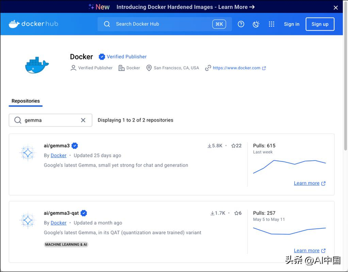 与容器注册表类似,Docker 有一个用于生成式 AI 模型的注册表,可以在 hub.docker.com/u/ai 访问。模型以与容器映像相同的 OCI 格式存储。