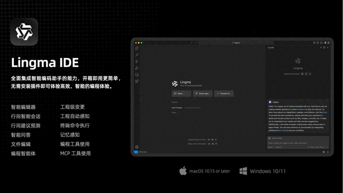 通义灵码AI IDE深度适配了最新的千问3大模型,全面集成通义灵码插件能力,具备编程智能体、行间建议预测、行间会话等功能,不仅可以辅助写代码、修BUG,还拥有自主决策、MCP工具调用、工程感知、记忆感知等能力,可帮助开发者完成复杂编程任务。