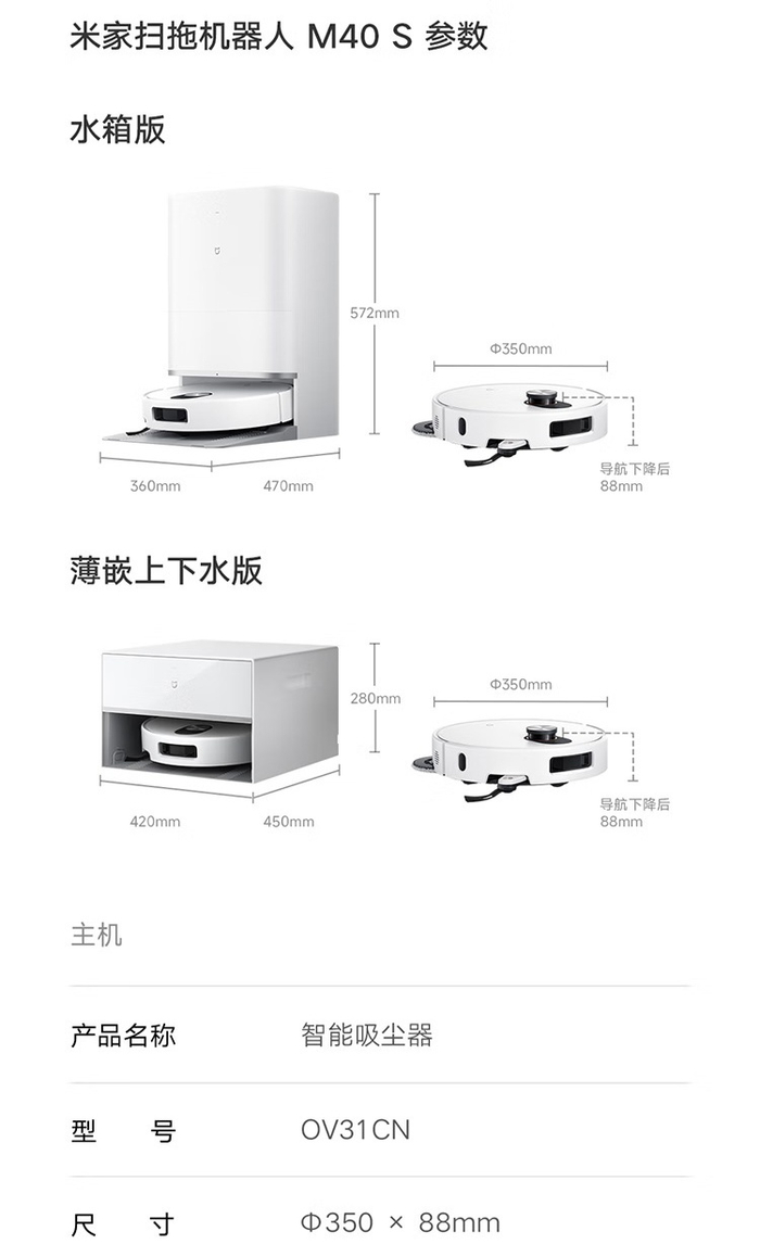 IT之家附小米米家扫拖机器人 M40 S 参数如下: