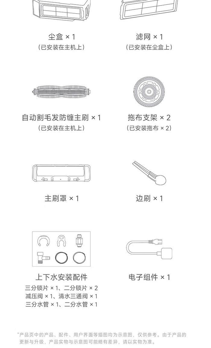 新扫拖机器人还配备智能伸缩式边刷和拖布,遇到边角区域,自动伸出并毫米级贴角落扫灰、贴墙边擦地;配合主机独立水箱,精密水量控制。