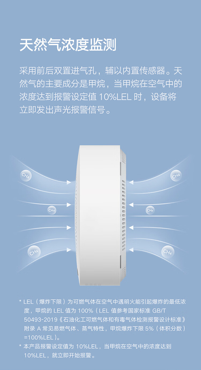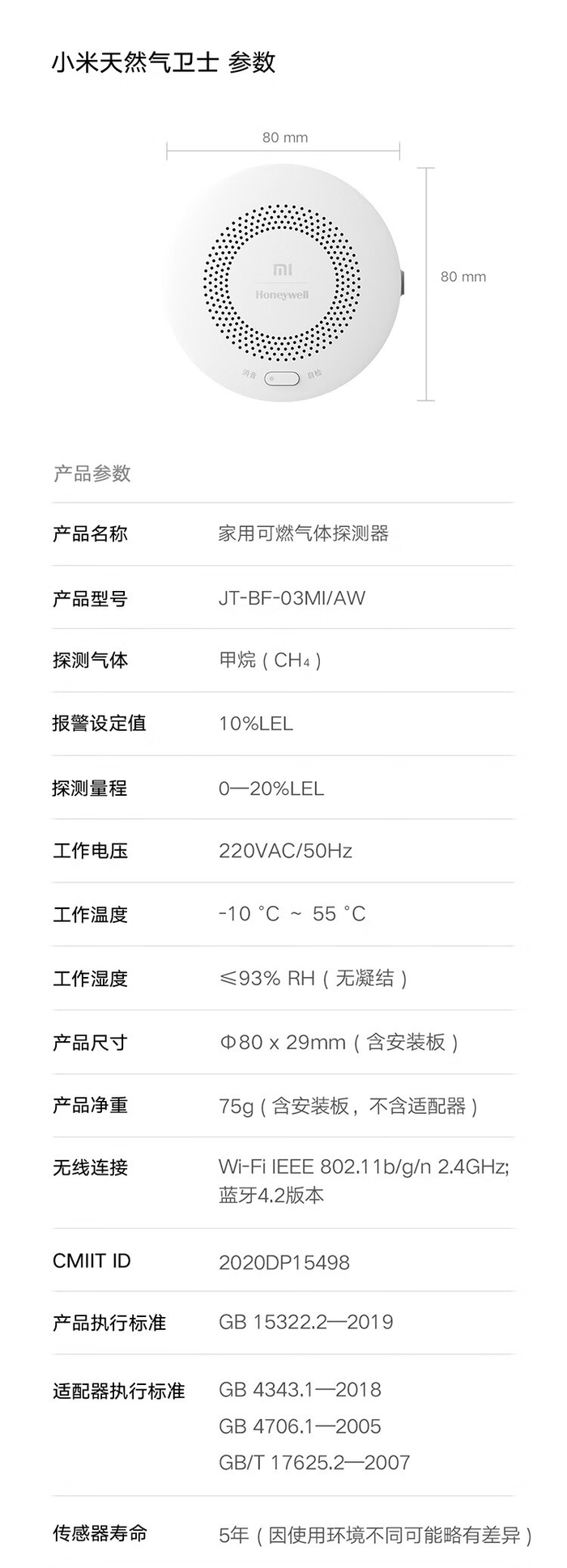 同时,小米天然气卫士内置蓝牙网关,支持所有米家蓝牙网关子设备,让厨房不再成为信号盲区。设备还支持远程自检,无需手动按下按钮,打开米家 App 即可实现远程自检,用户还可以通过 App 实时查看天然气浓度。
