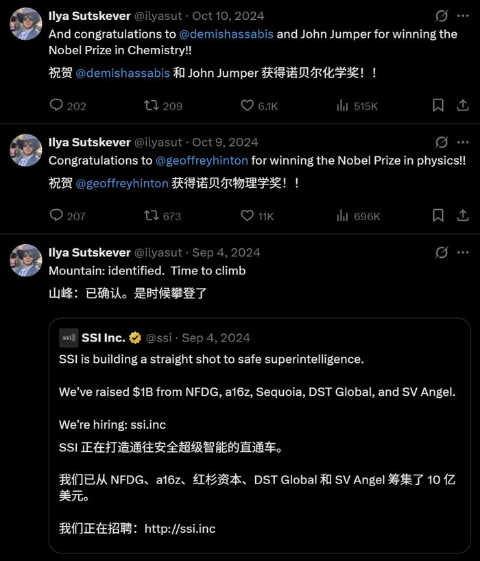 在此之前,他的X还停留在对诺贝尔奖的祝福和创业官宣。