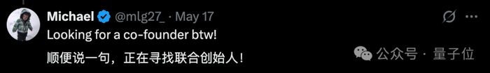 另外,Michael目前还在主动寻找合适的联合创始人,希望未来可以将公司规模扩大到百万美元级别。