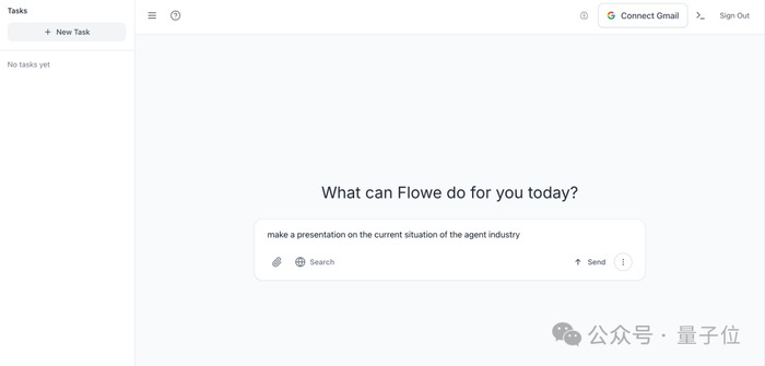 我们也是第一手实测了它的PPT制作功能,要求FloweAI帮忙制作一份有关Agent行业发展的演示文稿。(支持中文对话)