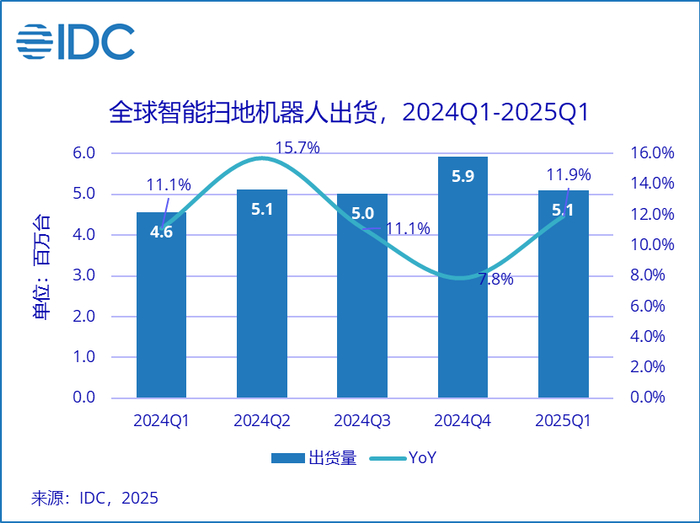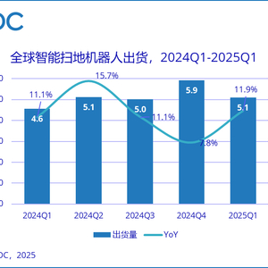 IDC:今年 Q1 全球智能扫地机器人出货超 500 万台同比增长 11.9%,中国品牌领跑
