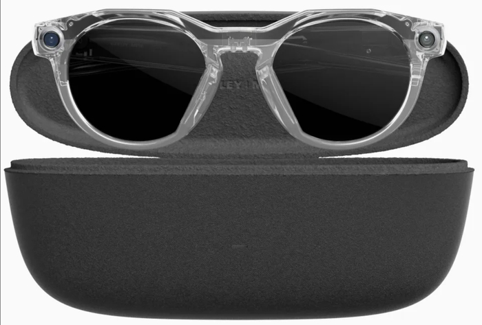 从外观上来看,新AI眼镜基于Oakley HSTN系列设计,造型比较时尚,有灰色、黑色、棕色、透明色等多种配色,两颗摄像头依然位于眼镜两端,与上代基本相同。