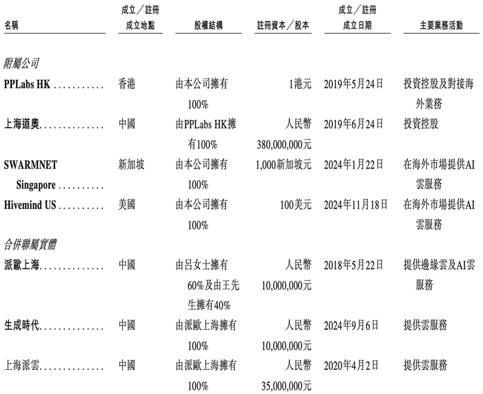 PPIO派欧云全资附属公司及合并联署实体详情如下: